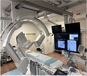 インターベンション認定医を中心にインターベンションエキスパートナース、血管診療認定臨床検査技師、体外循環技術認定臨床工学士とともにインターベンション専門診療放射線技師としてチーム医療をおこなっており、専門的な知識と技術をもとに最新の医療技術に対応した血管撮影およびインターベンションの支援体制を図るとともに、放射線機器の安全管理と放射線防護の最適化に努めております。